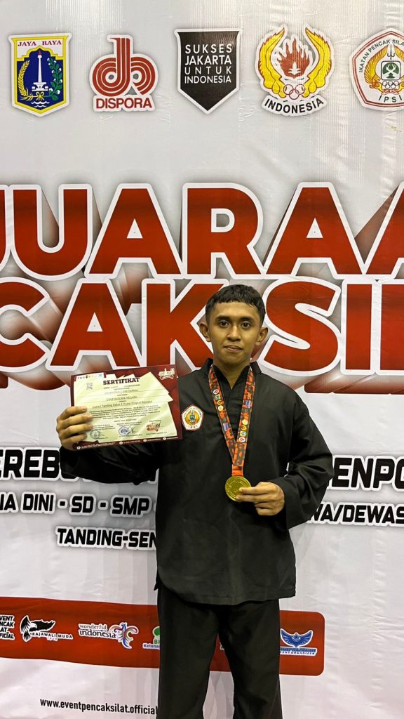 Mahasiswa STKIP Kusuma Negara Jakarta meraih Medali Emas dalam Tournament Event Pencak Silat Jayakarta Championship 3″, tingkat Nasional Tahun 2025, pada tanggal 20 April 2025 di GOR PKP Jakarta Islamic School Jakarta Timur
