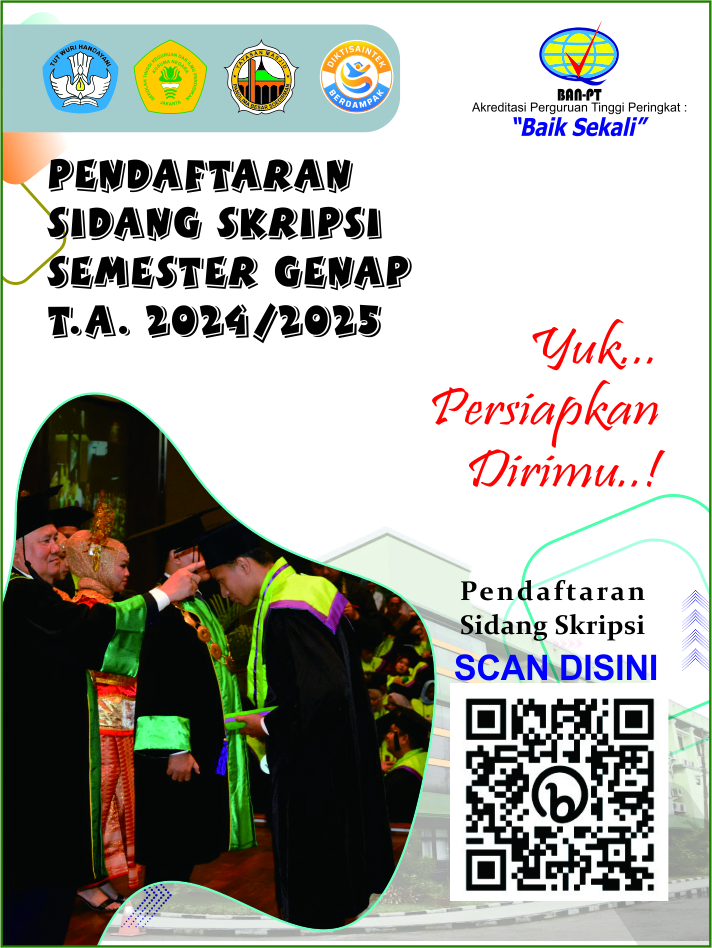Pendaftaran Sidang Skripsi Semester Genap Tahun Akademik 2024/2025 dimulai tanggal 30 Juni 2025, yukk persiapkan dirimu untuk mendaftar di Link online kami, silahkan scan barcode yang tertera di pamflet.